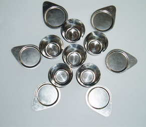 ?料碗:主要用于爐頭堝處料口的下料,料碗出口的大小可決定料滴的大小,從而決定玻殼的尺寸。坩堝:主要用于光學玻璃、眼睛玻璃等生產線,因它的出料量小,出料口主要以管子形式為主,加工工藝較低。制作生產玻殼用各種規格的料碗、坩堝、三套坩堝、鉑金器皿及制品。